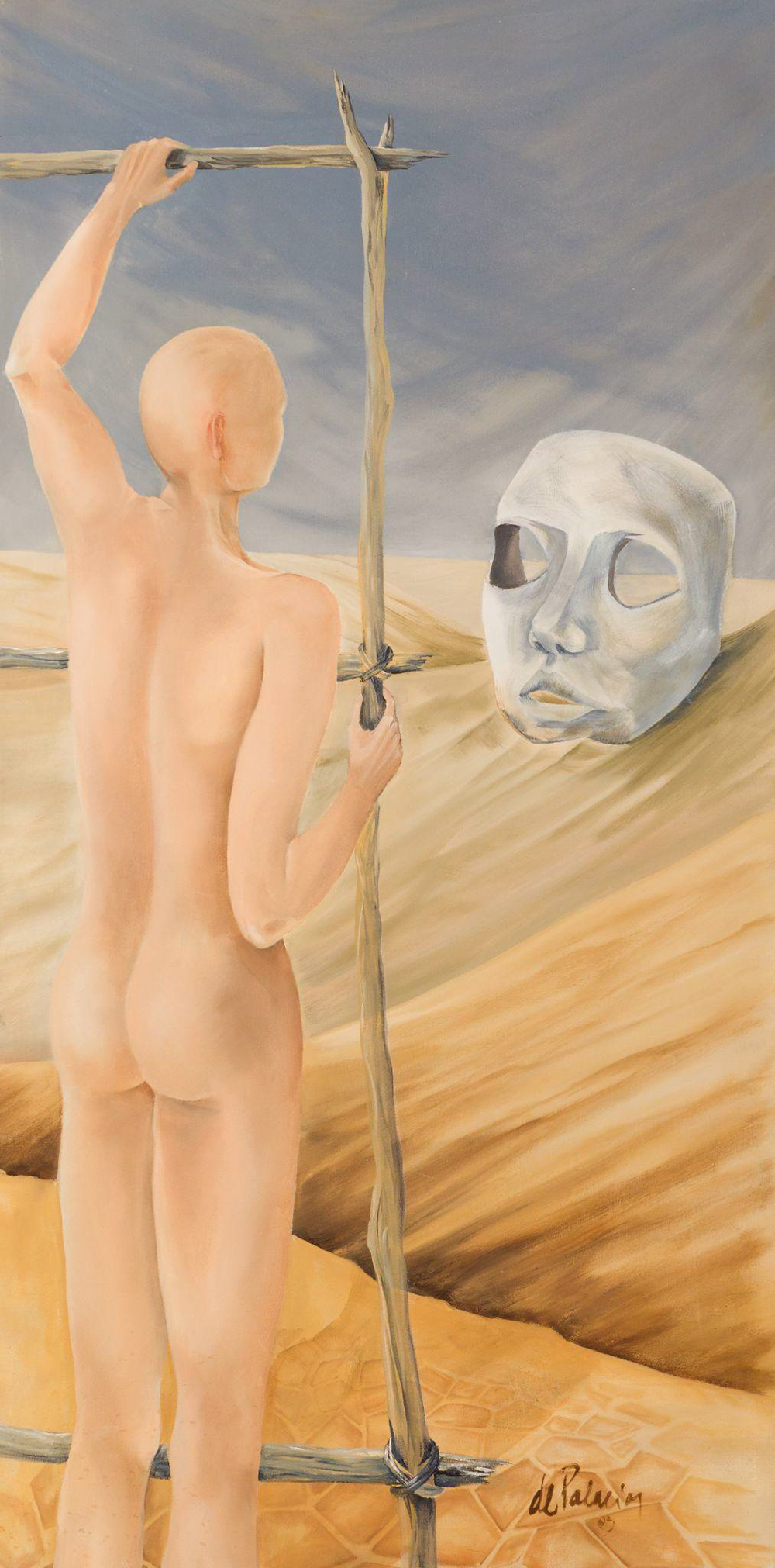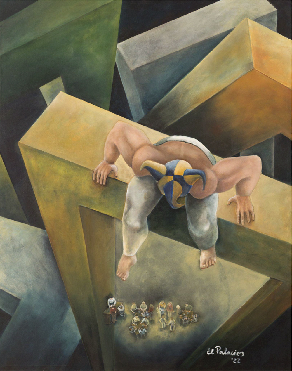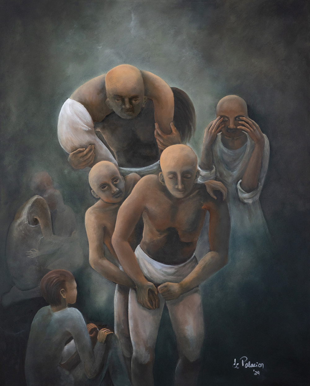 Figuras humanas, máscaras, cabezas calvas, bufones, escaleras y portales en la búsqueda de traducir lo inexplicable en imágenes. La esencia detrás de la forma es el lenguaje para hablar de fuerza, desafíos y ambigüedades, una línea estrecha entre caras opuestas, donde encuentro el clima para compartir la pasión que me lleva a crear.