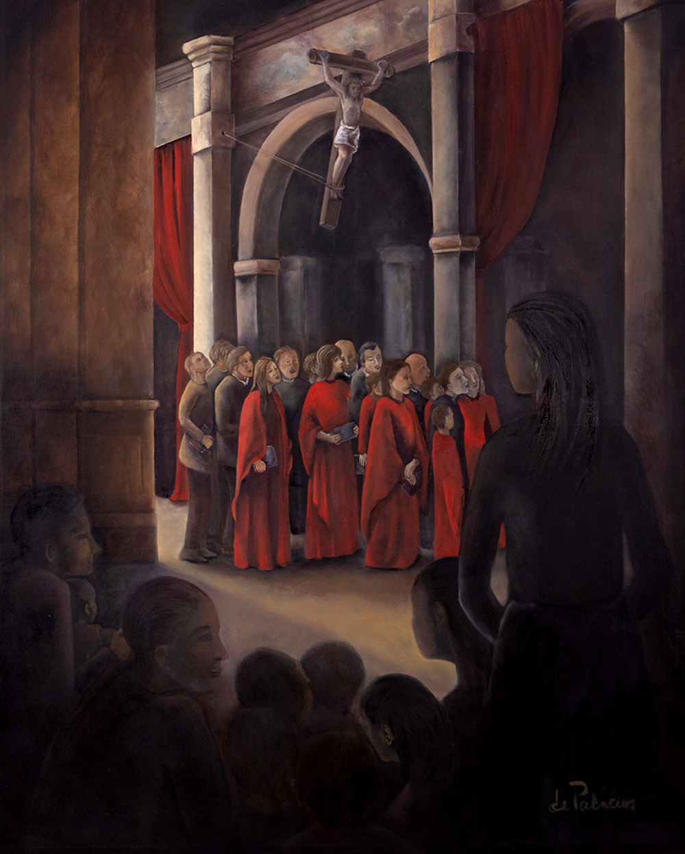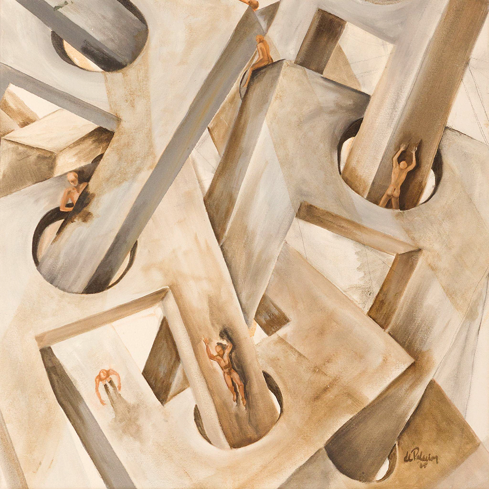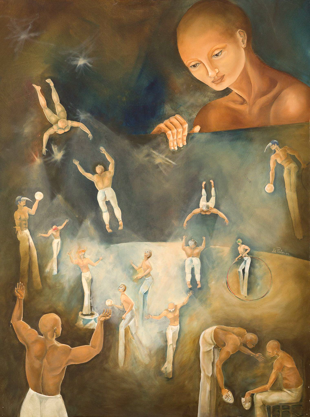 Figuras humanas, máscaras, cabezas calvas, bufones, escaleras y portales en la búsqueda de traducir lo inexplicable en imágenes. La esencia detrás de la forma es el lenguaje para hablar de fuerza, desafíos y ambigüedades, una línea estrecha entre caras opuestas, donde encuentro el clima para compartir la pasión que me lleva a crear.
